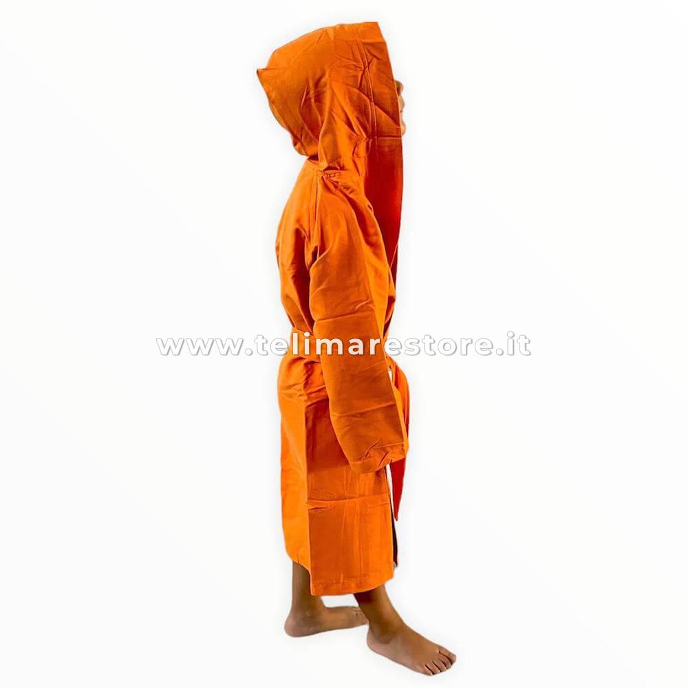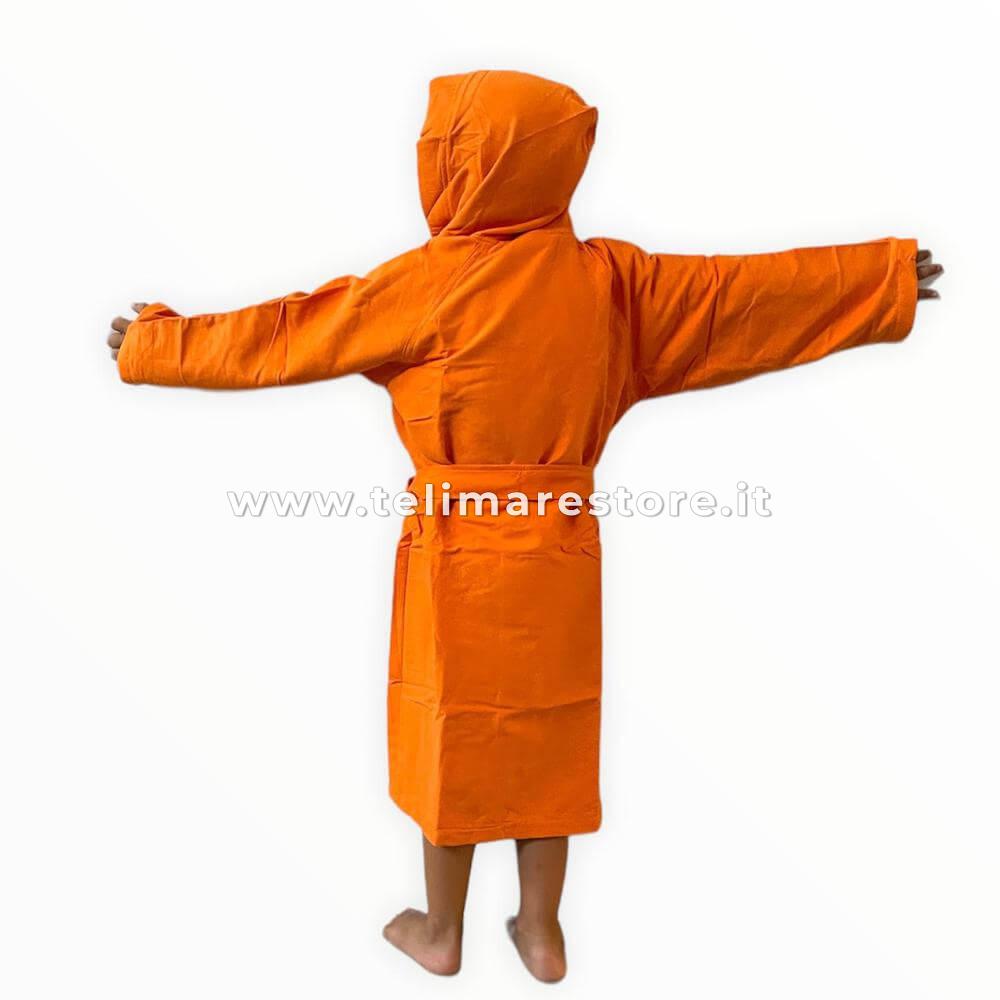 L'Accappatoio in Microfibra Arancio unisex per Bimbo e per Bimba, grazie alla sua fibra sottilissima, ha una assorbenza di gran lunga superiore a qualsiasi altro accoppatoio in cotone. Poco ingombrante e pesante si può riporre in valigia o del borsone, occupando pochissimo spazio e peso. L'Accappatoio in Microfibra Arancio veste sia il Bimbo che la Bimba, adatto e comodo per voi mamme, che dovete lavarlo e asciugarlo, ogni volta che i vostri figli tornano dalle loro attività sportive. E' dotato di cappuccio, due tasche anteriori, cintura e di una borsina in microfibra, dello stesso colore, da usare per riporlo dopo l'uso, o da riporre i propri oggetti. Gli Accappatoi in Microfibra di nostra produzione firmati Seamar si lavano in lavatrice a 30 gradi senza ammorbidente e non si stirano. Si consiglia di non lasciarli umidi nella borsa per non deteriorare il prodotto. Il Bimbo in foto ha 5 anni e alto 110 cm.