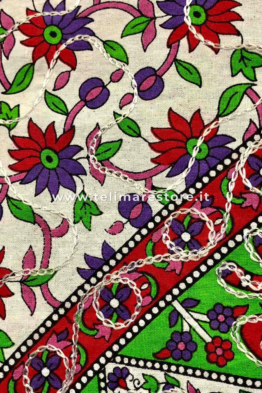 Copritutto Grande Elefanti Ricamato Rosa 100% cotone misura 210x230cm senza frange prodotto in India. La caratteristica del copri divano è il ricamo in filo lamè, che si estende per tutto il telone, riprendendo in parte il disegno sovrapponendosi ad esso! Il Disegno è formafo da tanti cerchi concentrici, che dal più piccolo centrale, si allargano fino a ricoprire quasi tutto il telo, con disegni e forme diverse su ogni cerchio! Le stampe su questi teloni vengono eseguite a freddo in modo artigianale, senza ausilio di macchinari, quindi soggette a imperfezioni, sbavature di stampa e difetti di tessitura che fanno dei teli copritutto articoli unici. Acquistali per la tua casa come: copri divano, copri tavolo, copriletto, tenda parasole, tovaglia, arazzo decorativo da parete, gran foulard, da stendere su un prato per un pic nic o come regalo utile e alternativo Un consiglio per il lavaggio, è quello di aggiungere aceto di vino bianco in acqua fredda, per fissare meglio il colore.