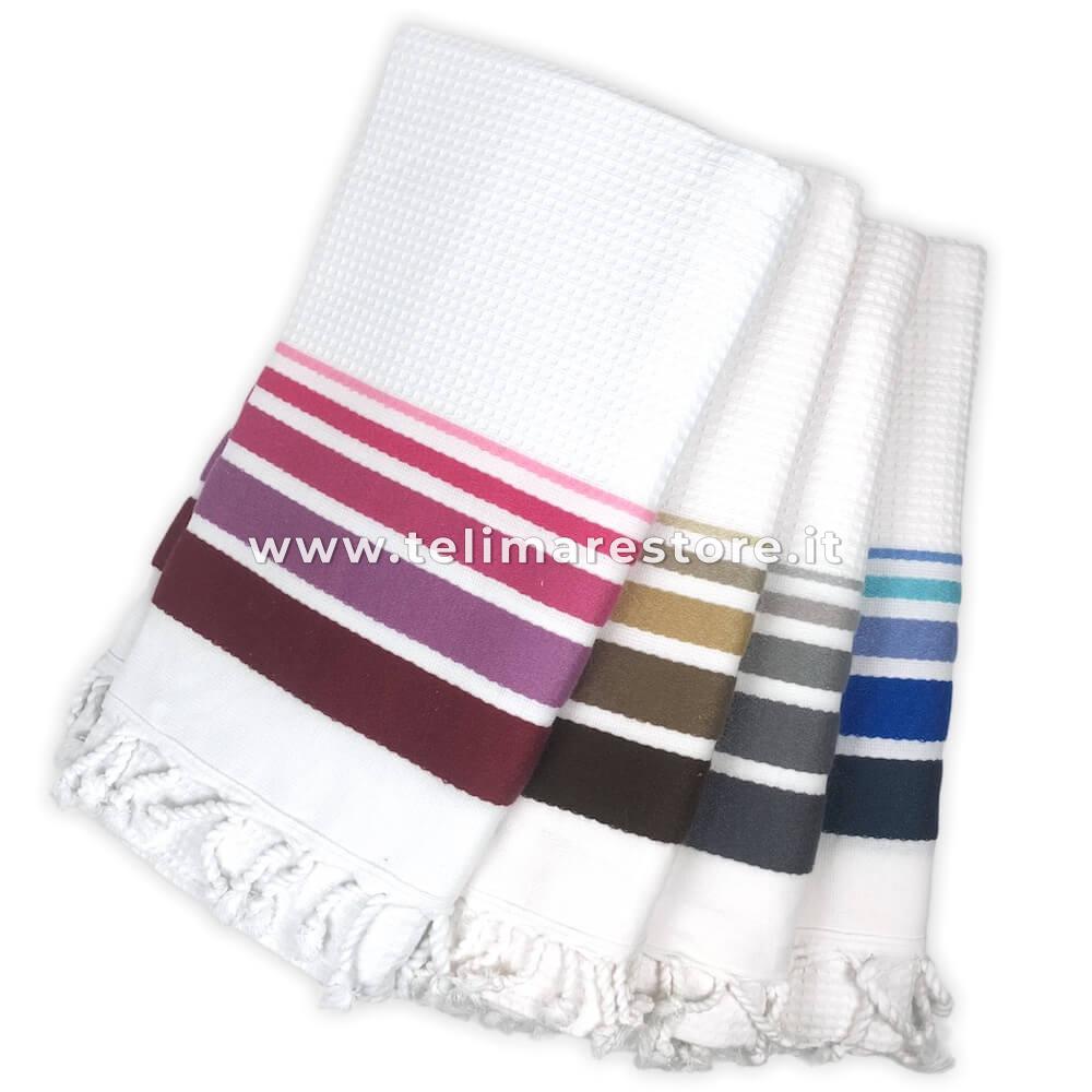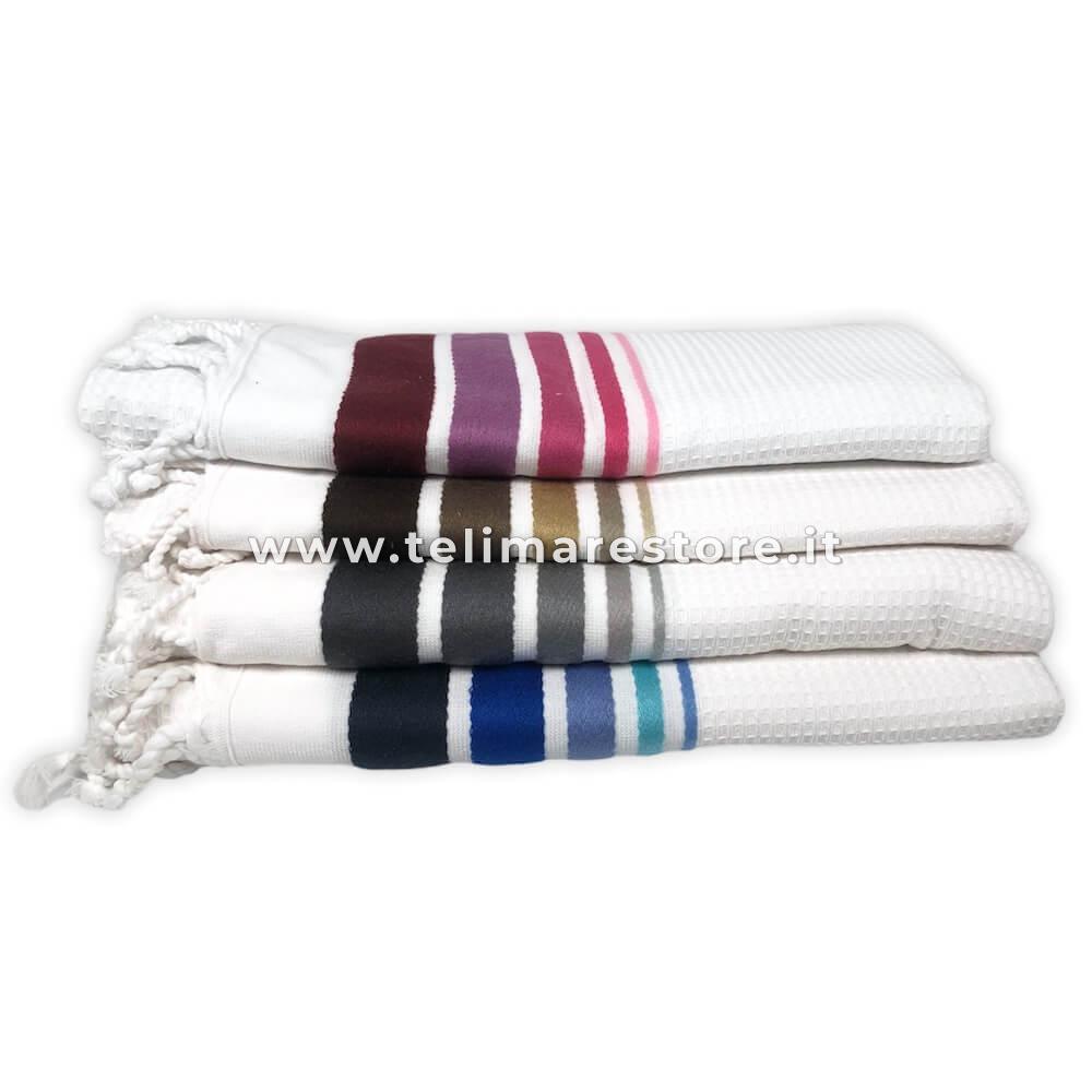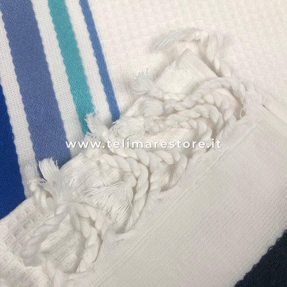 Fouta Spugna Nido D'ape Bianco Blu