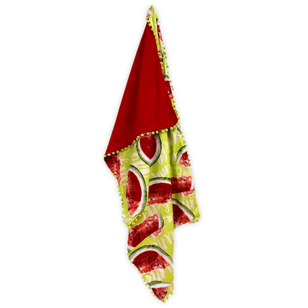 Il Telo mare pareo Kikoy Melon con Pon Pon è un articolo originale che stà avendo successo in questi ultimi anni. La possibilità di stampare su un lato, permette di seguire le tendenze dell'estate, cosi da essere sempre trendy anche in spiaggia. Cucito in un unico Telo; la parte sopra in finissimo cotone con stampe dai colori sgargianti, la parte sotto in morbida maglina di microspugna elasticizzata in poliestere, che lo rende confortevole. Per completare una passamaneria di pon pon rifinisce il telo in tutti quattro i lati. Il Kikoy si può utilizzare al mare in piscina come coprilettino, da stendere sulla sabbia o da indossare come Pareo. Si lava a 30 gradi senza centrifuga, misura 90 x 170 cm e viene prodotto in India. Un bellissimo articolo da acquistare anche come regalo utile e alternativo!